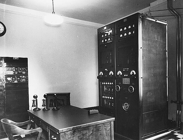 KYA Operated this RCA 1-B 1,000 Watt screen grid transmitter in the Whitcomb Hotel from June 25, 1930, until June 1, 1937.