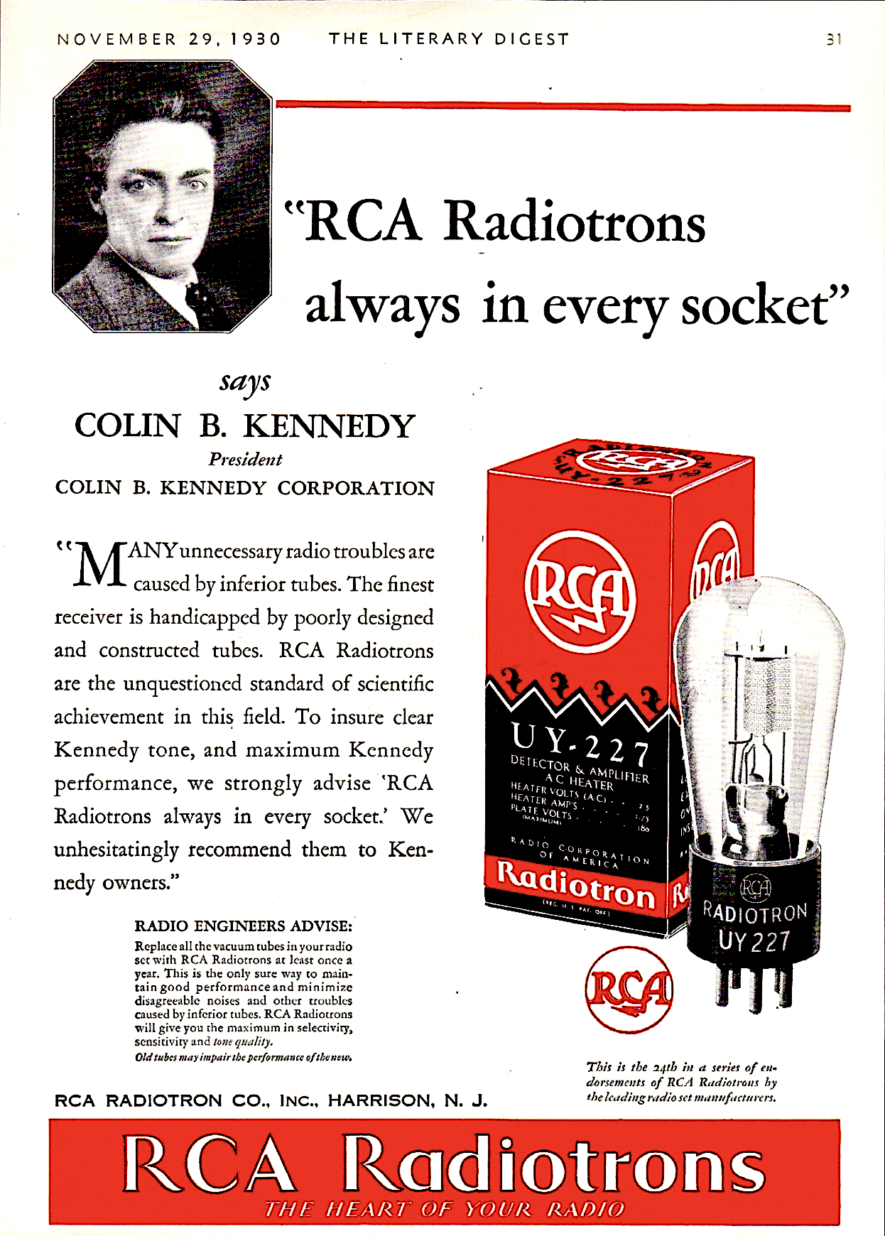 The company was originally set up to supply receivers to experimenters and hobbyists, but Kennedy had arrived on the scene at the perfect time. Radio was booming, and the Kennedy Corporation’s San Francisco factory was soon building high-quality radio receivers for the consumer market.