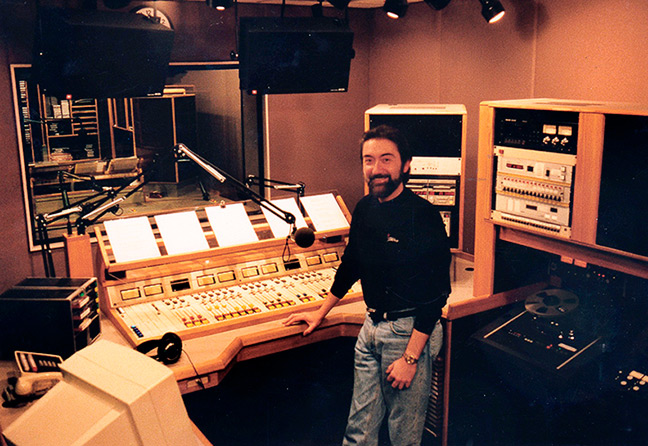 jack-friday-klok-fm-c1984 Jack Friday (BARHOF 2023), air name of Robert Lewalski, in KLOK-FM studio, San Francisco, circa 1984