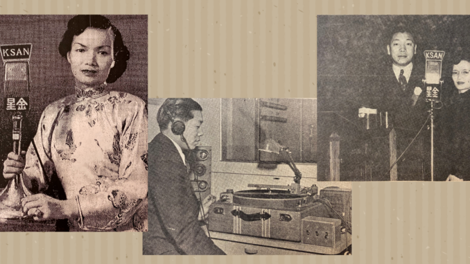 The late-night live broadcast, heard six nights a week, was a mix of news, music, and other entertainment. Ron Tong recalls his mother was the “anchor” of the broadcast while his father handled the technical side. May Chin Tong would use a pair of scissors and a pot of glue to cut stories from various newspapers and paste them onto sheets of paper, creating her scripts.
